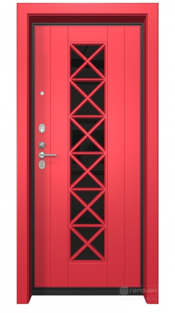 Входная дверь двустворчатая Steel Панель 18 Грандо К 03 со стеклом